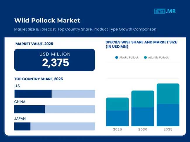 ROCKVILLE, MD, UNITED STATES, March 28, 2026 /EINPresswire.com/ -- The global seafood landscape is shifting from traditional volume-based fishing to a high-tech, health-centric "Ocean-to-Table" economy. According to a new strategic outlook by Fact.MR, the global Wild Pollock Market is projected to climb from USD 2,275 million in 2024 to a staggering USD 3,981 million by 2035, expanding at a CAGR of 5.3%.